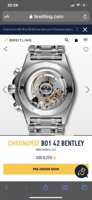- Tên Sản phẩm : CHRONOMAT B01 42 BENTLEY