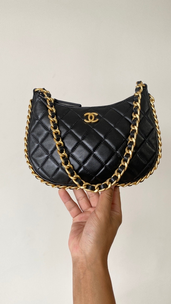 Chanel hobo black leather bag 2024