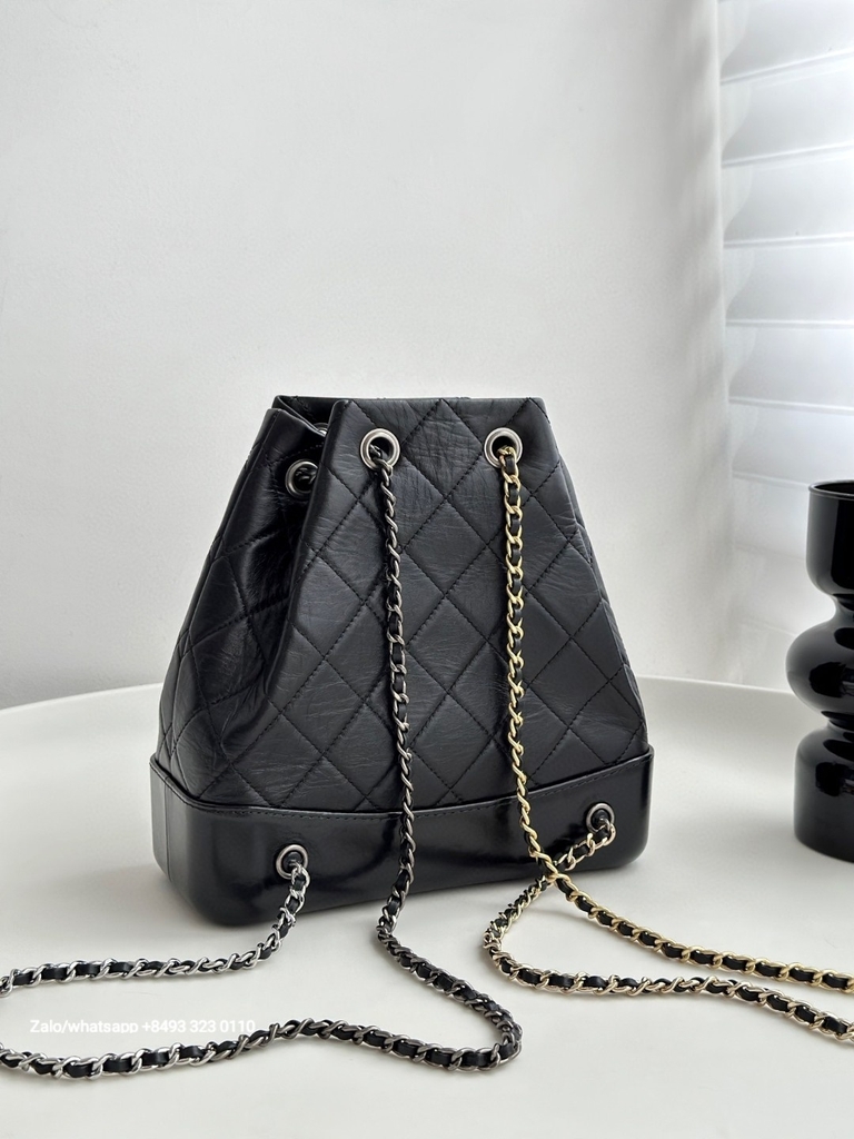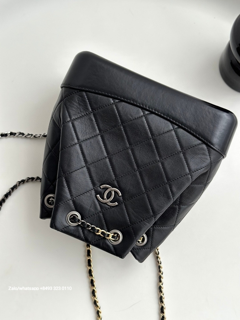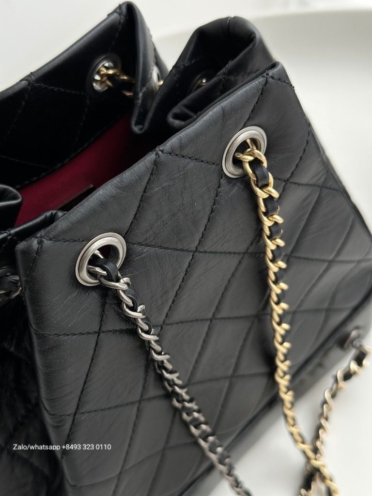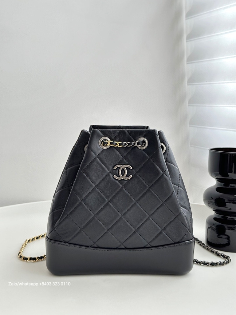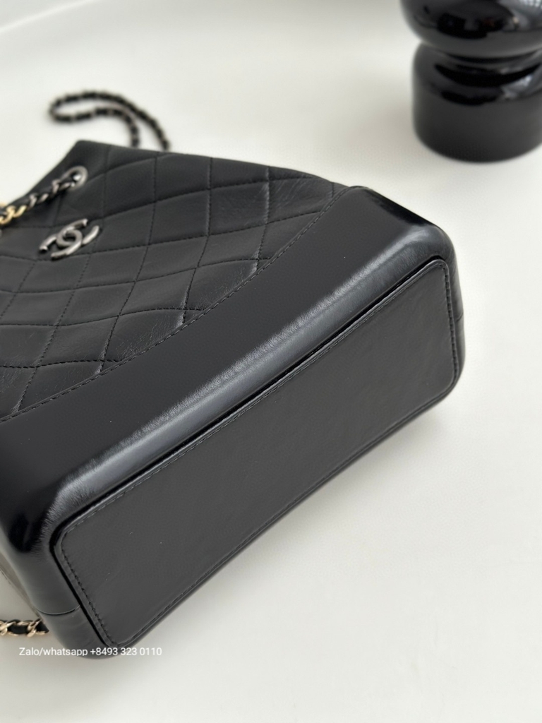 CHANEL Gabrielle calfskin dark-Tone black