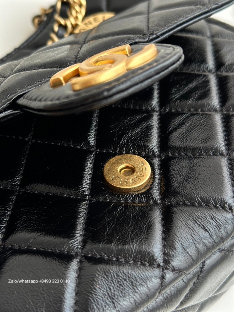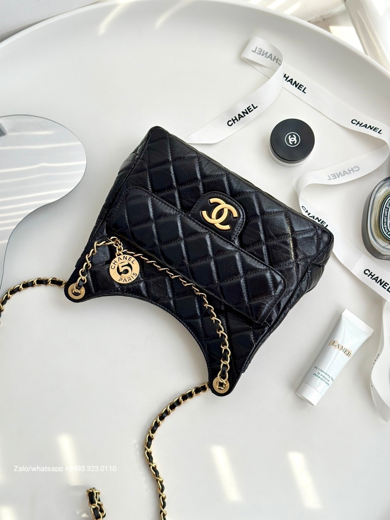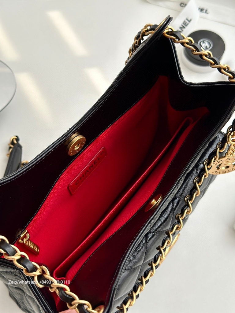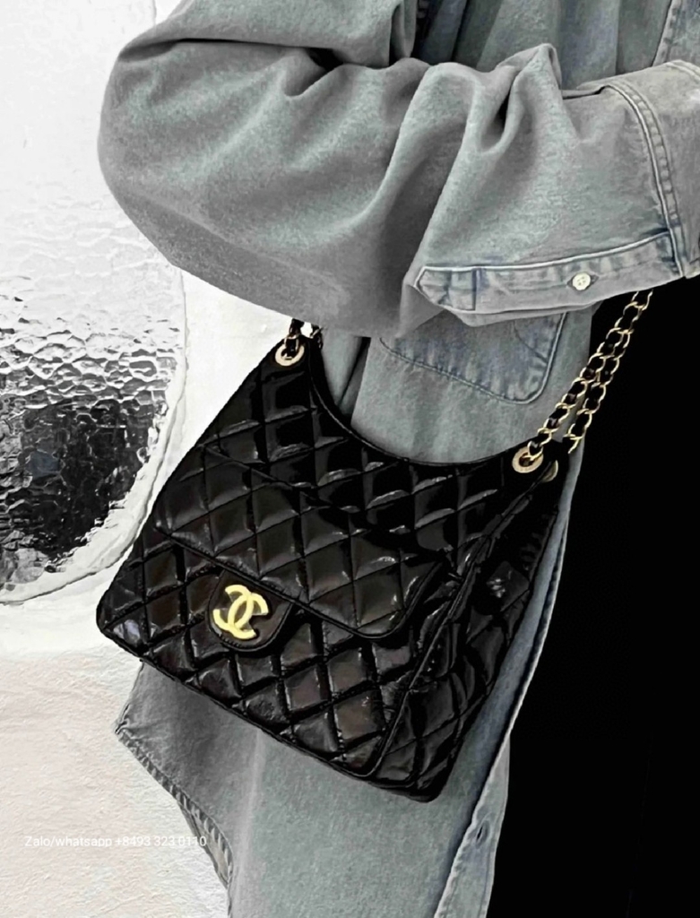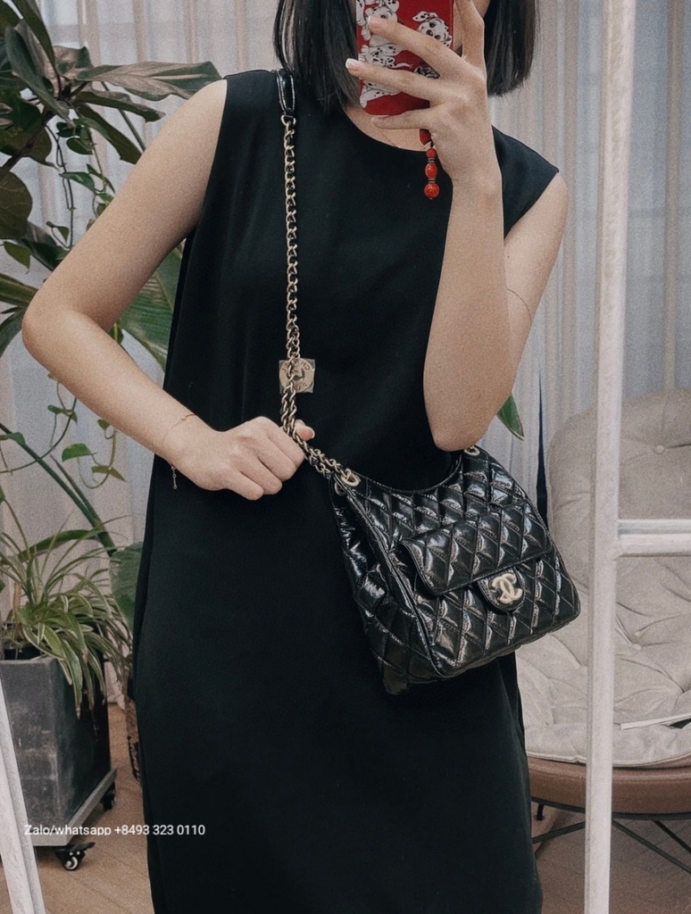 CHANEL SMALL HOBO BAG Shiny Crumpled Calfskin & Gold-Tone Metal Black AS4323 C2