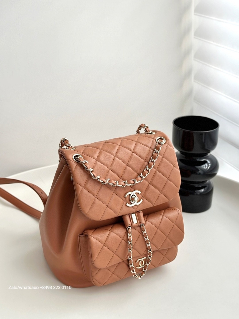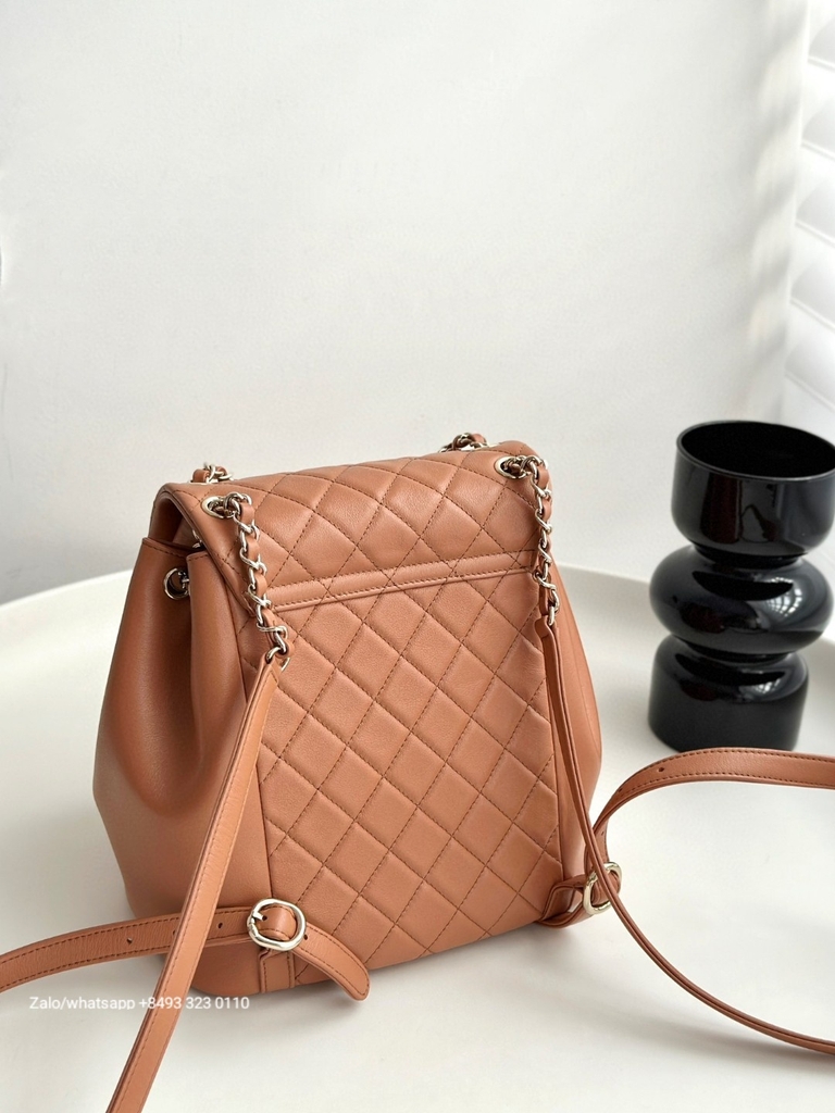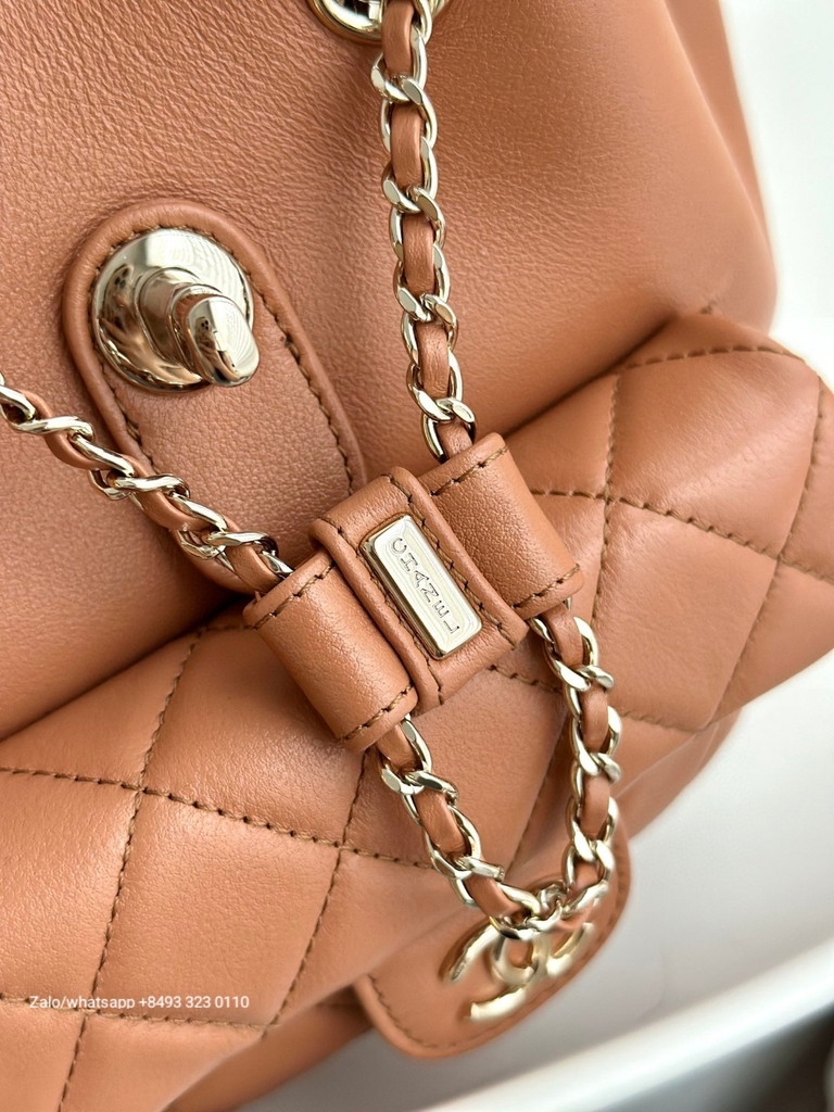 CHANEL Duma BACKPACK Lambskin Gold-Tone Metal beige