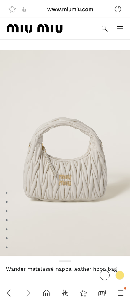 Miu Miu 5BC125 Wander matelasse nappa leather hobo bag white M1