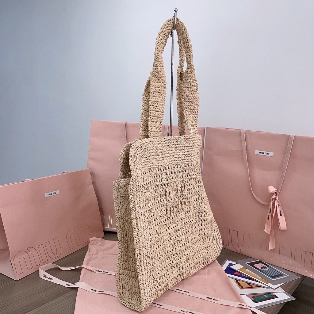 MIU MIU 5BG230_2DO1_F0018_V_OOO Woven fabric tote bag beige