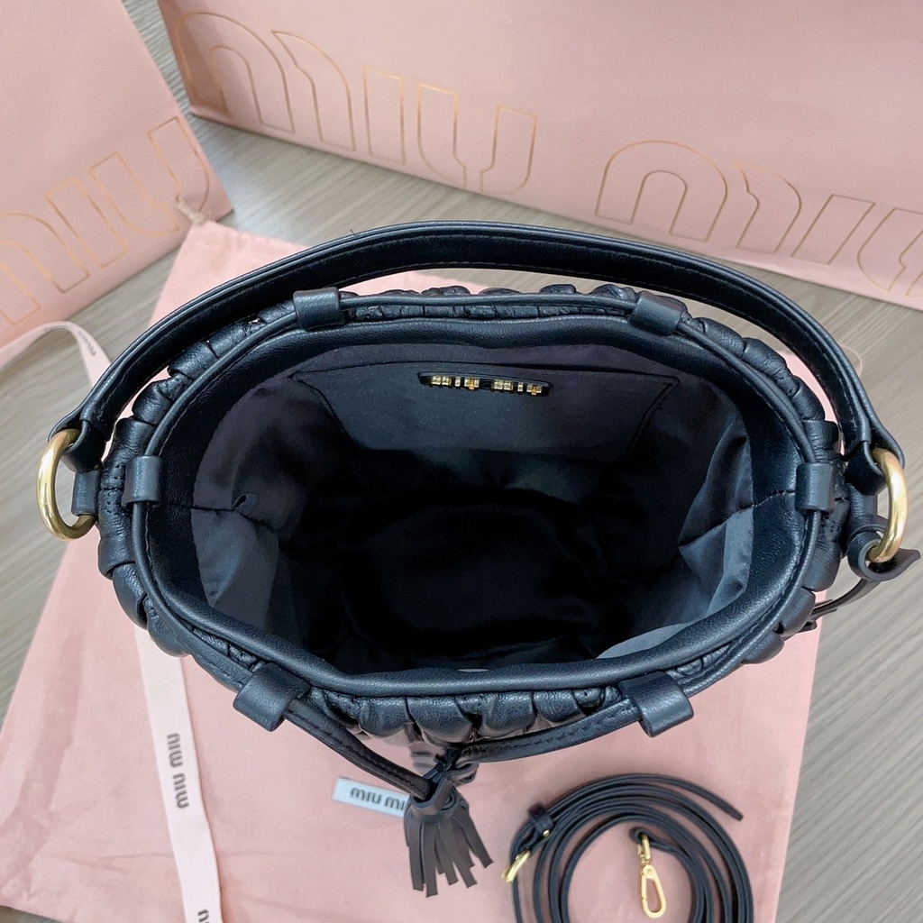 Miu Miu 5BE084_N88_F0002_V_OOO Matelassé nappa leather bucket bag black M1