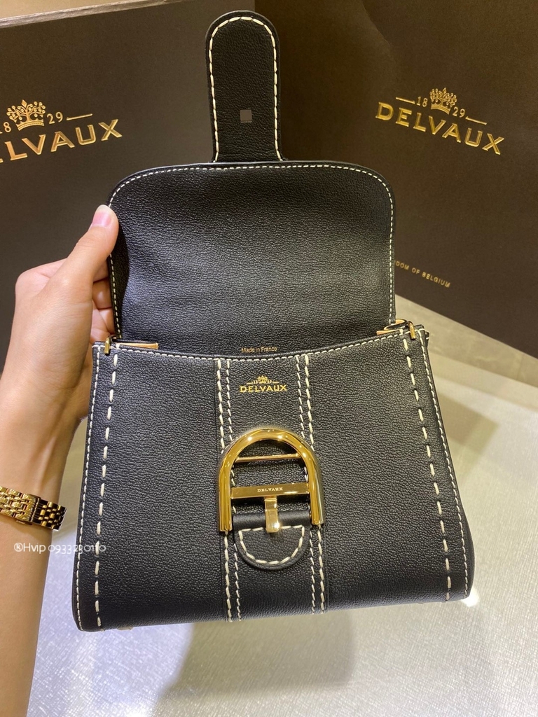 Delvaux Brillant Mini Surpiqué grained Calf leather black