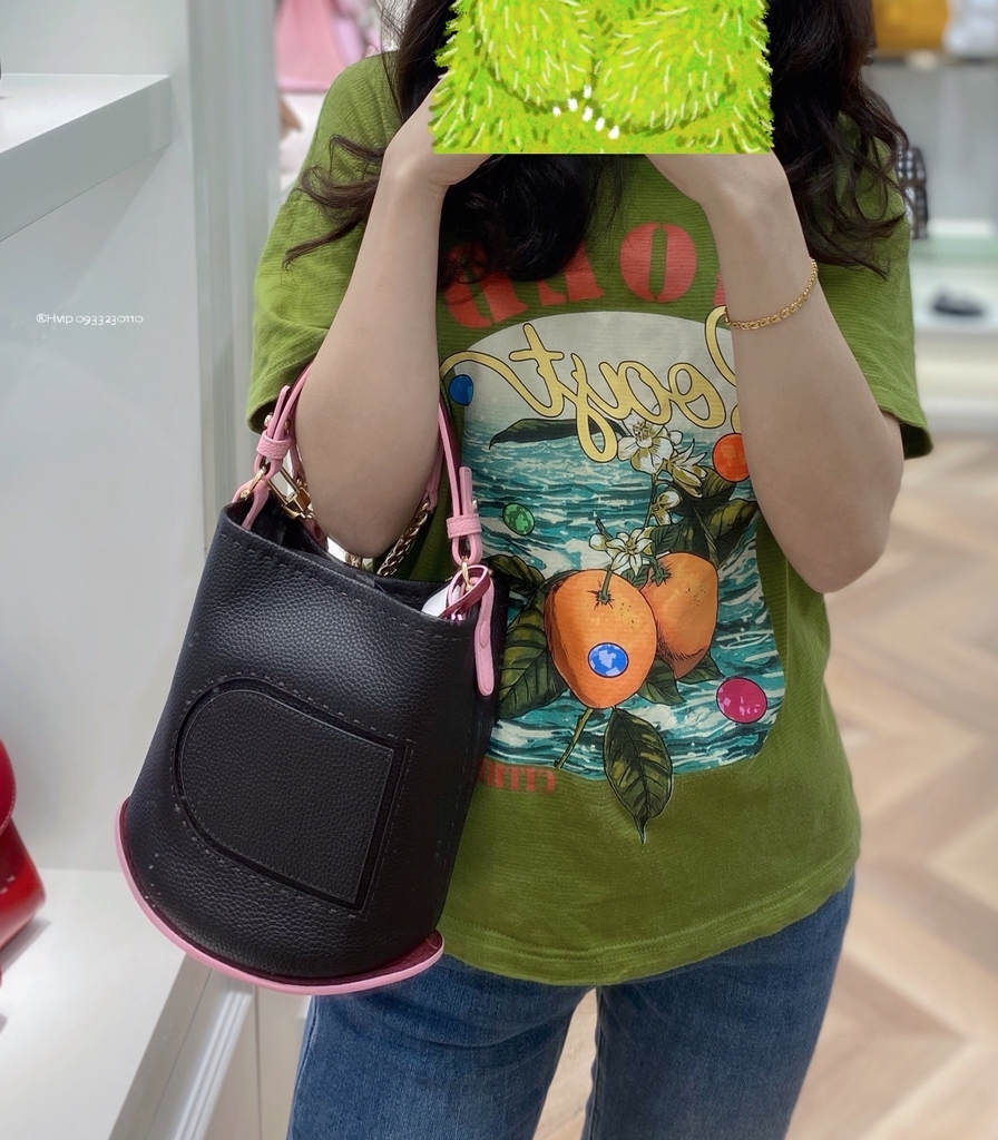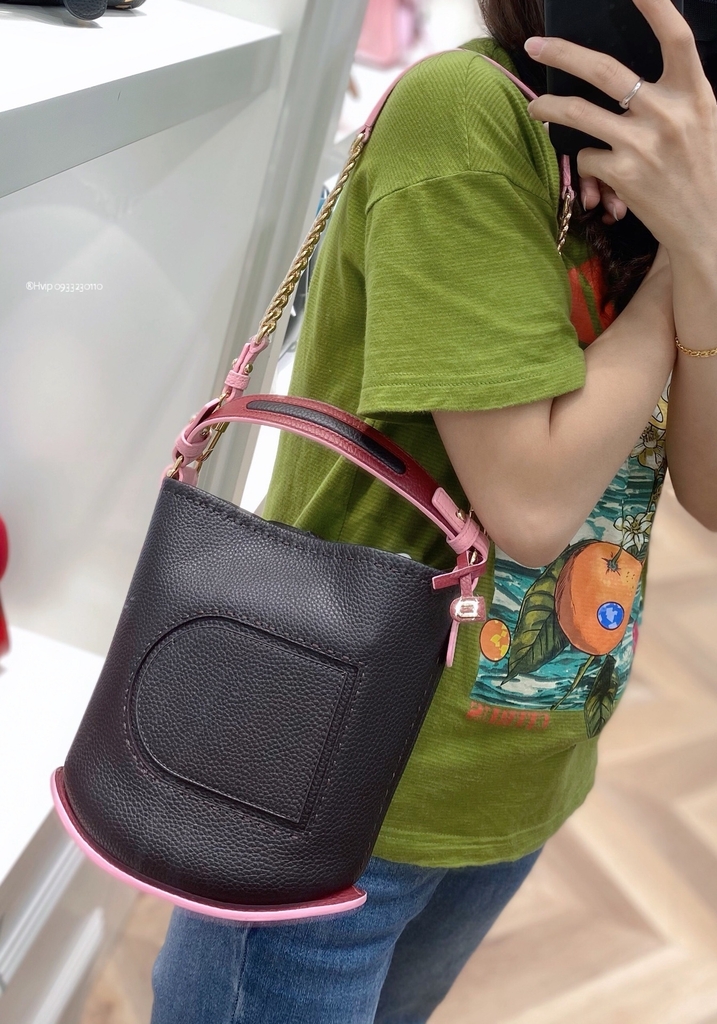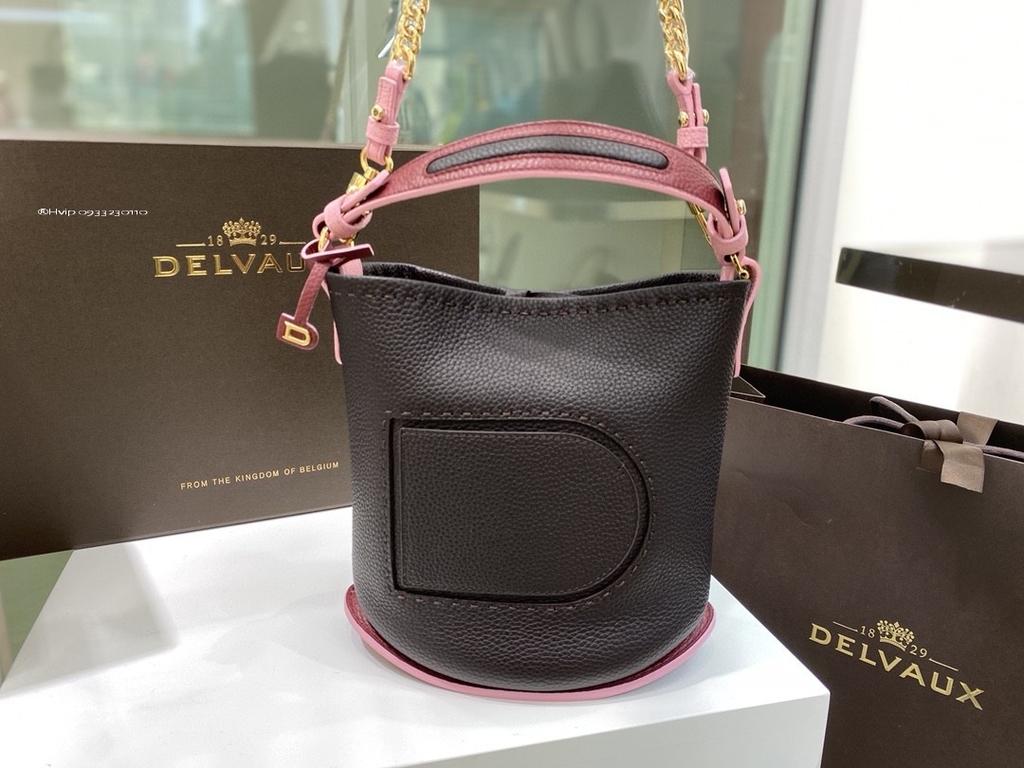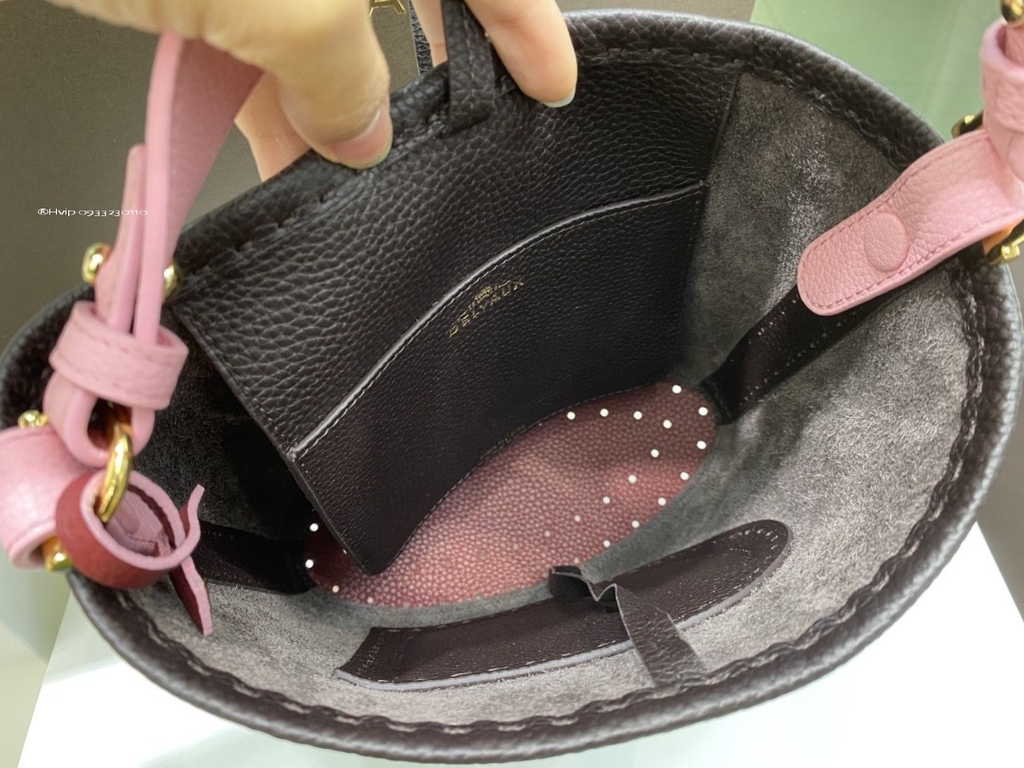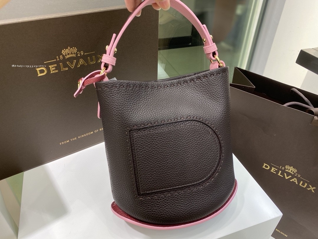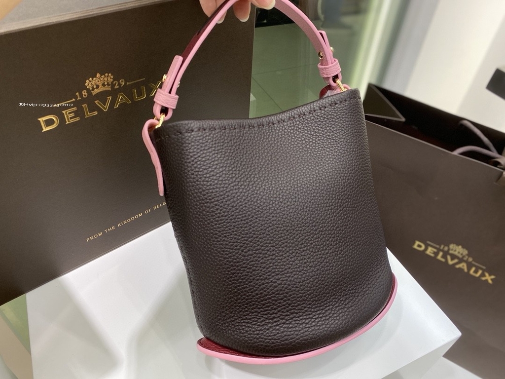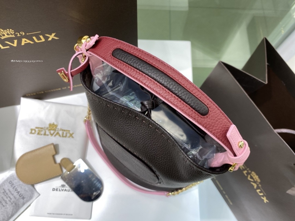 Delvaux Pin Mini Bucket Surpiquéen Taurillon Soft AA0607ATT0ADNDO black/pink
